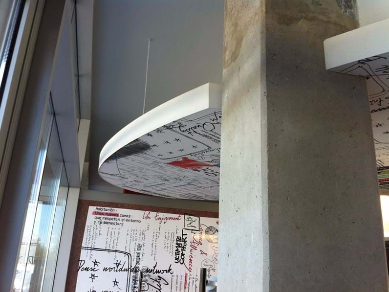 Tấm hấp thụ âm treo tự do và gắn tường làm bằng vải căng.