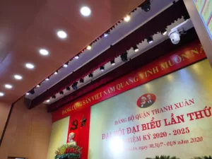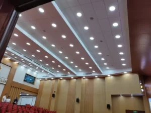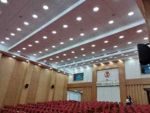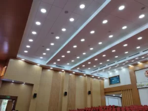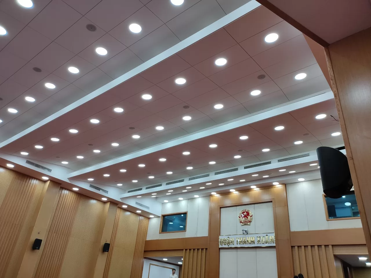 Hội trường UBND Quận Thanh Xuân do công ty Phương Ngọc cung cấp và thi công hệ thống trần tiêu âm vừa hoàn thiện.