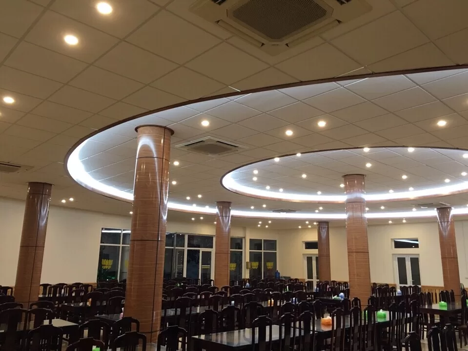 Thực trạng độ ồn của phòng ăn/ phòng truyền thống công ty Than Thống Nhất TKV Quảng Ninh luôn khiến mọi người cảm thấy khó chịu và mệt mỏi, đặc biệt là khi tập trung đông người. Tuy nhiên, sau khi thay thế bằng hệ thống trần tiêu âm và cách âm Ecophon Focus E, hiện tượng này đã được cải thiện rõ rệt.