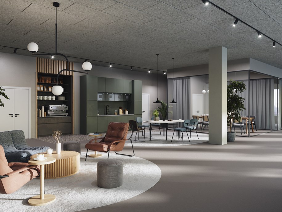 - Sử dụng các tấm hấp thụ len khoáng Ecophon để hấp thụ âm thanh tối ưu