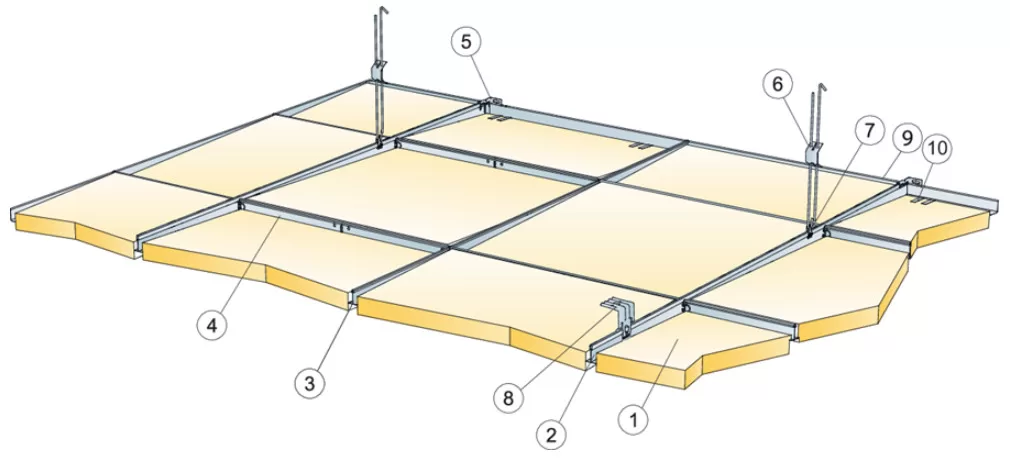 Các tấm trần có thể tháo dỡ dễ dàng. Độ sâu tháo dỡ tối thiểu theo sơ đồ lắp đặt.
